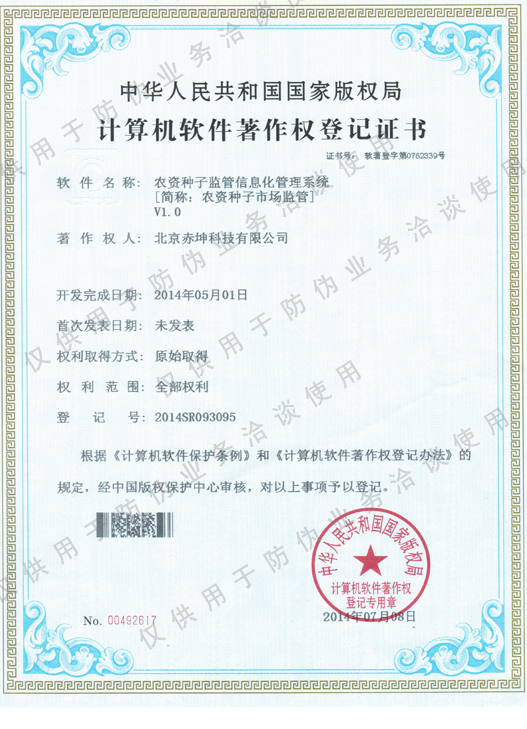 計算機(jī)軟件著作權(quán)證書
