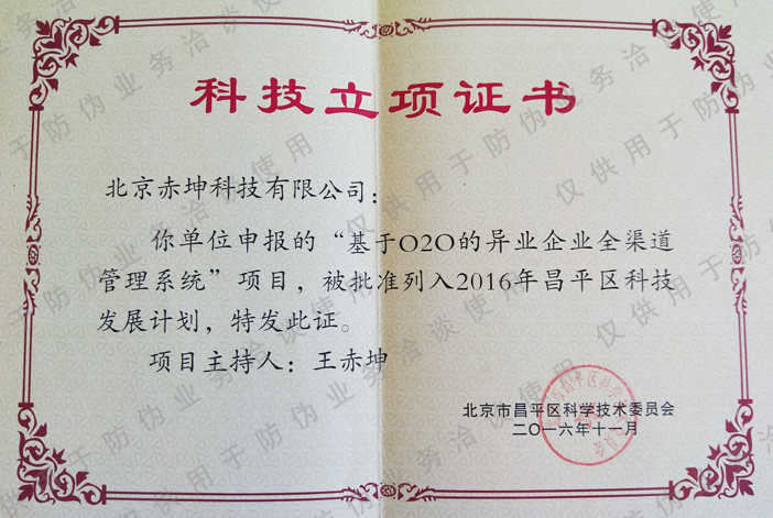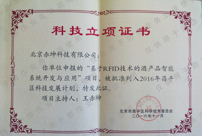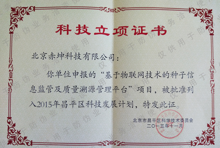 北京昌平科技立項證書